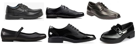 SHOES - Shoes must be smart, black, polishable, sturdy, weatherproof and of a sensible height, with a maximum 1.5 inch heel. No clear logo to be visible. For example: